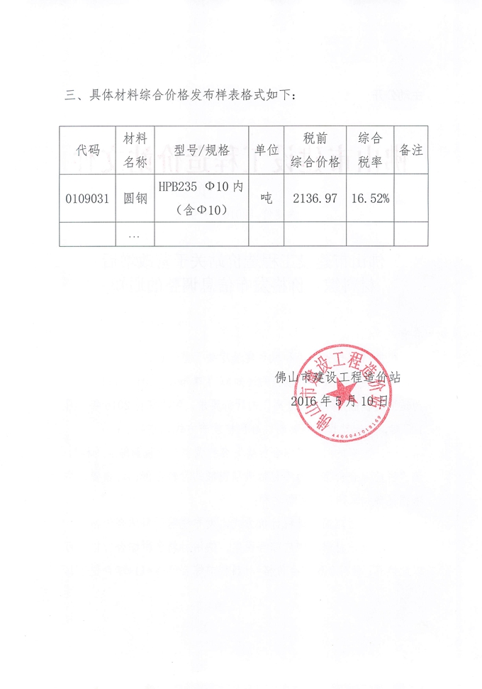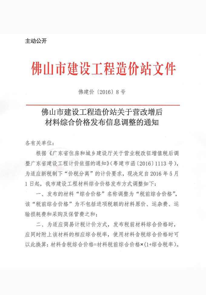 佛山市建設(shè)工程造價(jià)站關(guān)于營(yíng)改增后材料綜合價(jià)格發(fā)布信息調(diào)整的通知