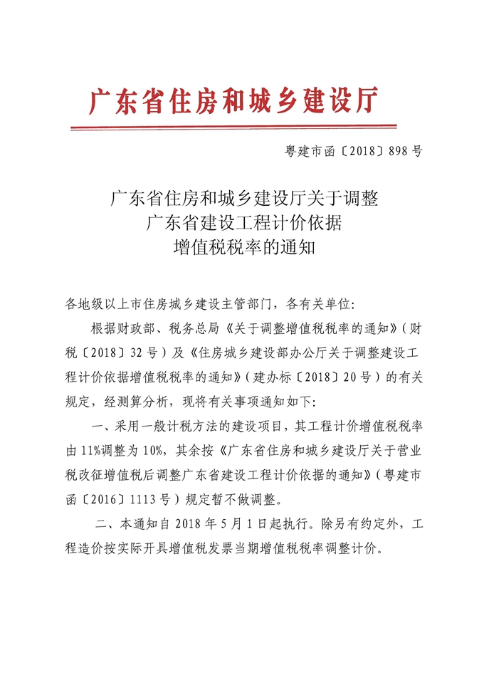 廣東省住房和城鄉建設廳關于調整廣東省建設工程計價依據增值稅稅率的通知