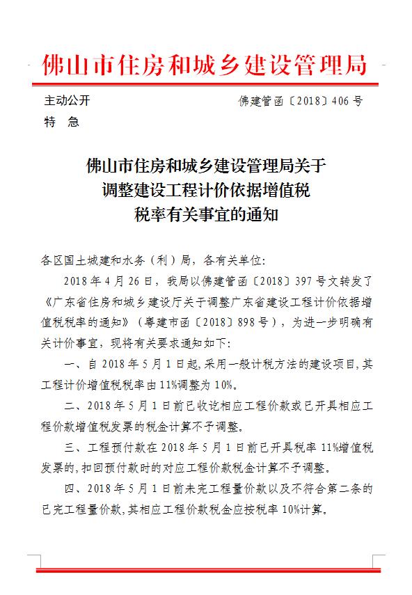 佛山市住房和城鄉(xiāng)建設(shè)管理局關(guān)于調(diào)整建設(shè)工程計(jì)價(jià)依據(jù)增值稅稅率有關(guān)事宜的通知
