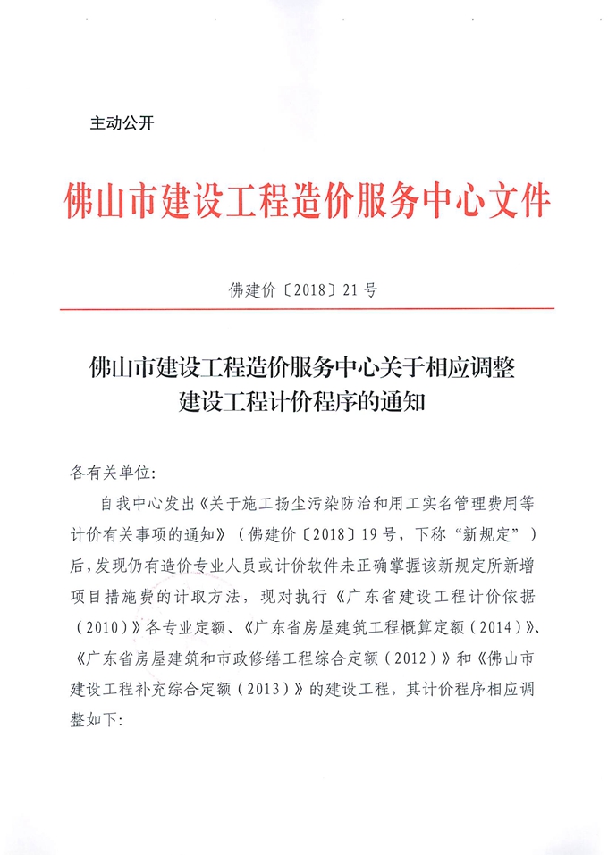佛山市建設工程造價服務中心關于相應調整建設工程計價程序的通知