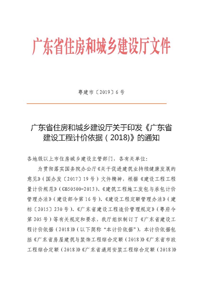 廣東省住房和城鄉建設廳關于印發《廣東省建設工程計價依據(2018)》的通知