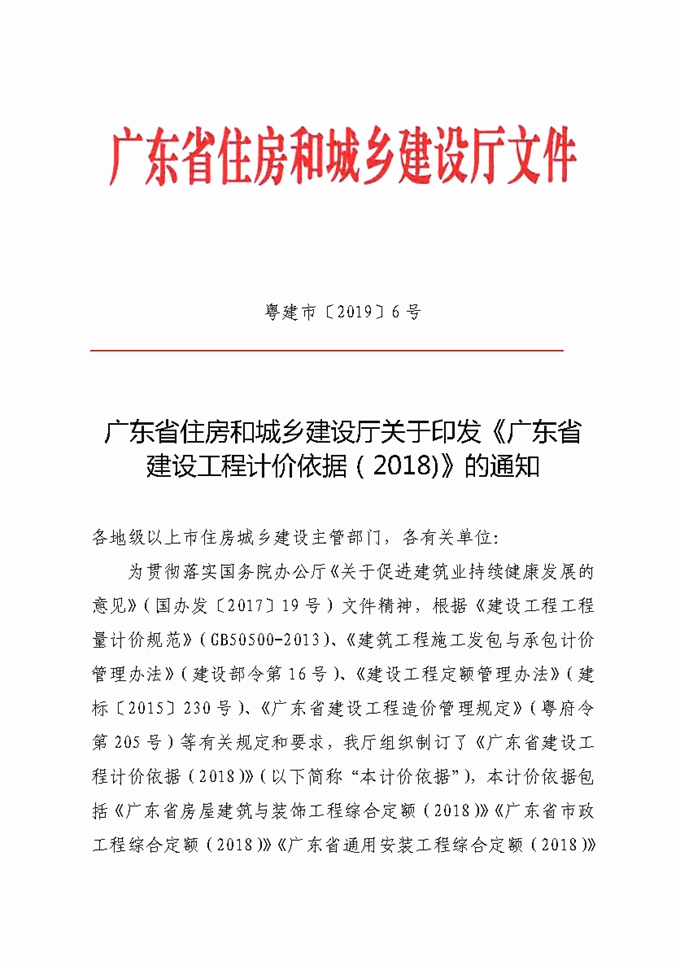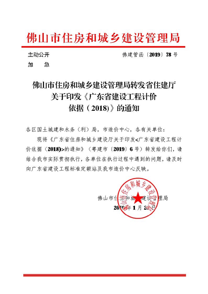 佛山市住房和城鄉建設管理局轉發省住建廳關于印發《廣東省建設工程計價依據(2018)》的通知