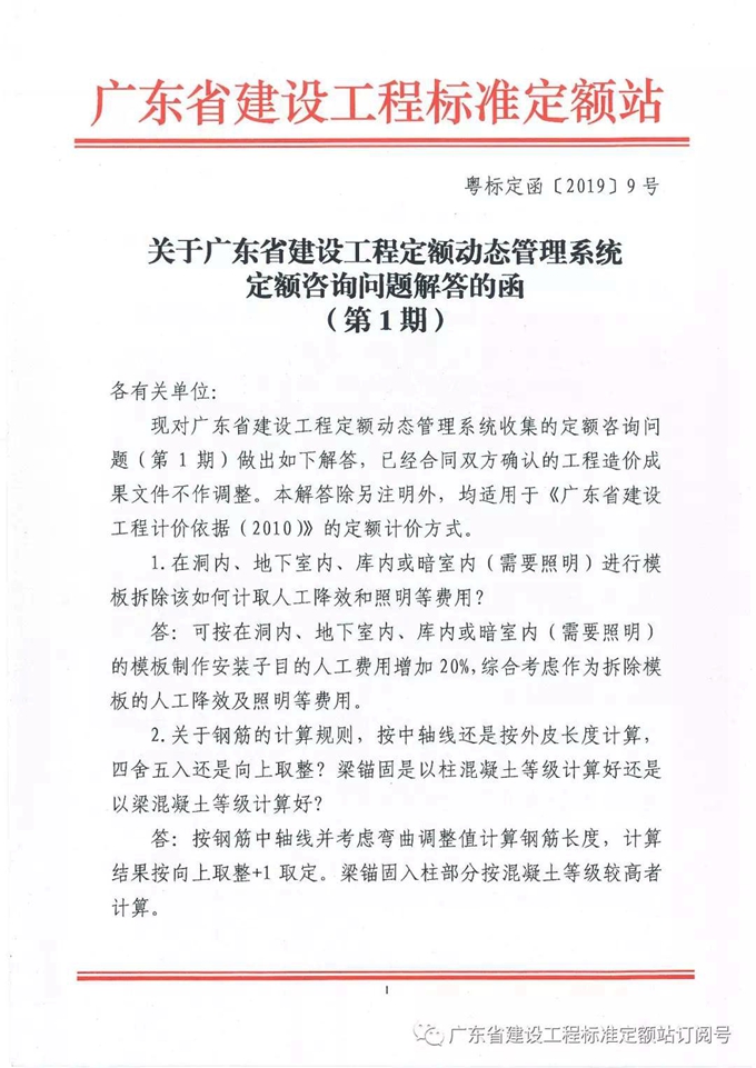 【計價依據解釋】轉發《關于廣東省建設工程定額動態管理系統定額咨詢問題解答的函(第1期)》