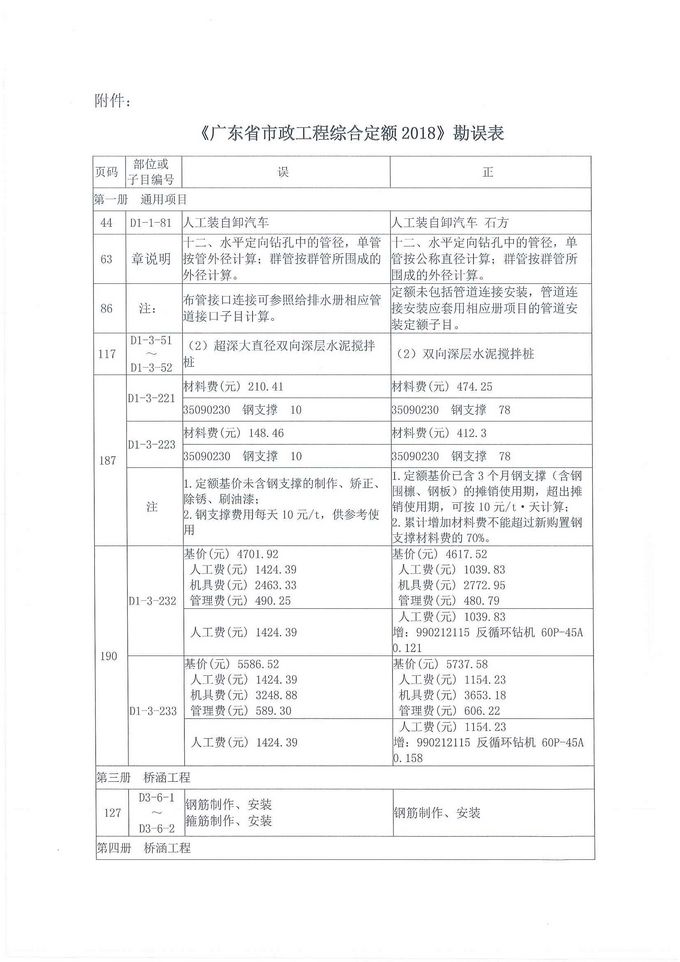 關于印發《廣東省市政工程綜合定額 (2018)》勘誤的通知