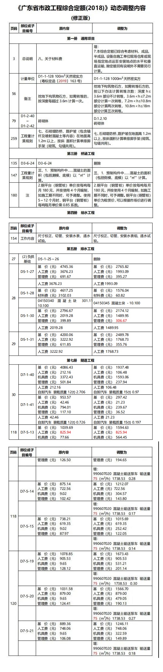 近期,我站組織專家研析了廣東省建設工程定額動態管理系統收集的反饋意見,現將《廣東省市政工程綜合定額(2018)》相關調整內容印發給你們,調整內容與我省現行工程計價依據配套使用,請遵照執行。在執行中遇到的問題,請通過“廣東省工程造價信息化平臺——建設工程定額動態管理系統”及時反映。
