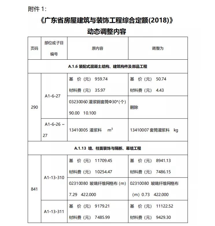 1、《廣東省房屋建筑與裝飾工程綜合定額(2018)》動態調整內容及子目;