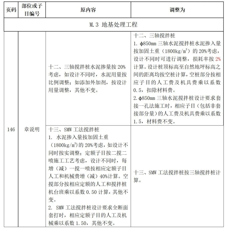 近期,我站組織專家研究分析了廣東省建設(shè)工程定額動(dòng)態(tài)管理系統(tǒng)收集的《廣東省城市軌道交通工程綜合定額2018》三軸水泥攪拌樁及SMW工法攪拌樁與市場(chǎng)實(shí)際存在一定差異的反饋意見(jiàn)。為加強(qiáng)定額動(dòng)態(tài)管理,經(jīng)廣泛調(diào)研與測(cè)算,現(xiàn)將三軸水泥攪拌樁及SMW工法攪拌樁項(xiàng)目調(diào)整后的內(nèi)容印發(fā)。本調(diào)整內(nèi)容與省現(xiàn)行工程計(jì)價(jià)依據(jù)配套使用,請(qǐng)遵照?qǐng)?zhí)行。執(zhí)行中遇到的問(wèn)題,請(qǐng)通過(guò)“廣東省工程造價(jià)信息化平臺(tái)——建設(shè)工程定額動(dòng)態(tài)管理系統(tǒng)”及時(shí)反映。