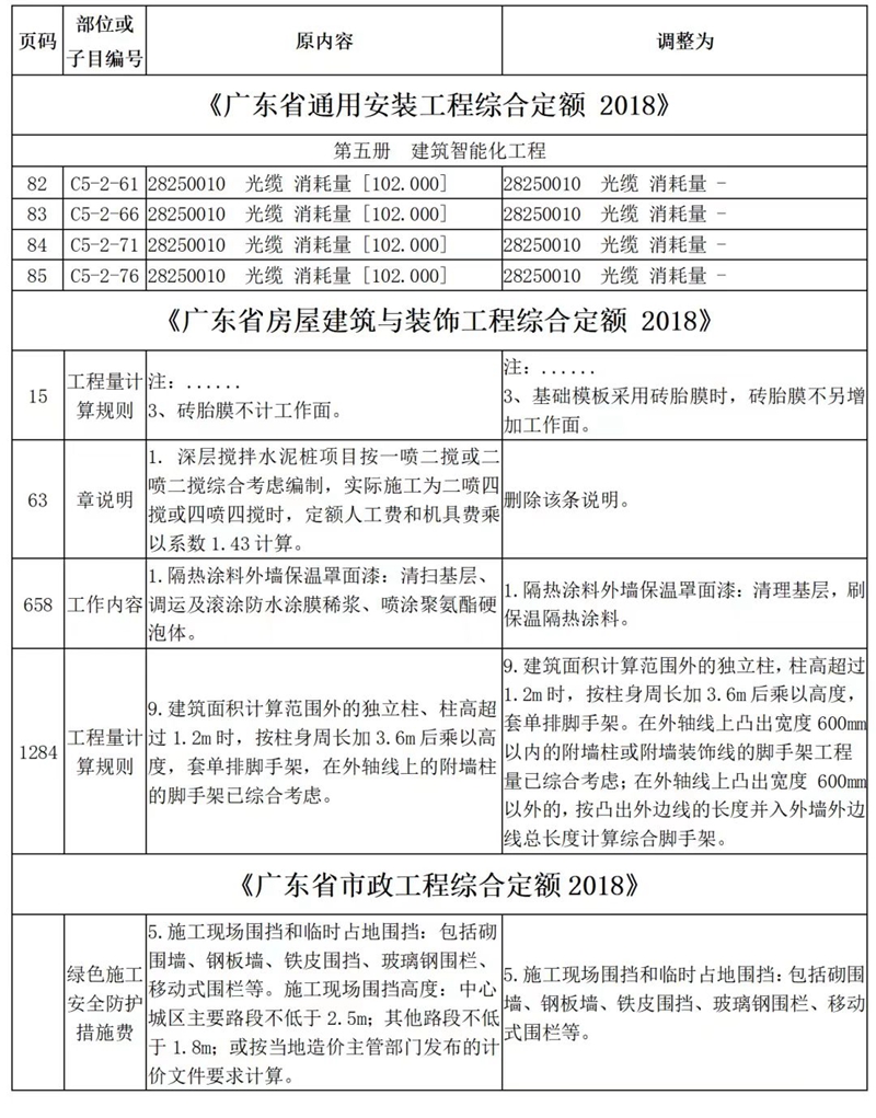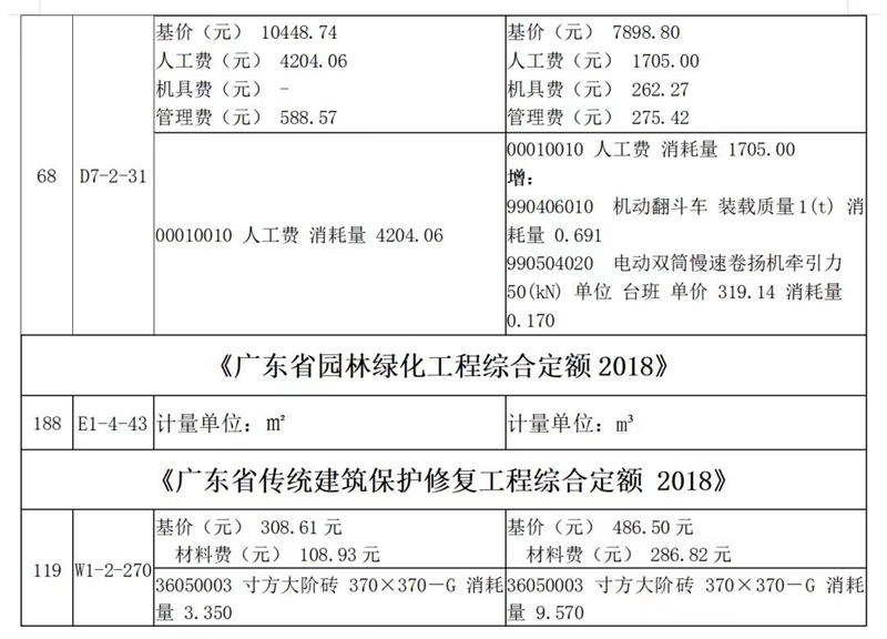 附件:《廣東省建設工程計價依據2018》動態調整內容
