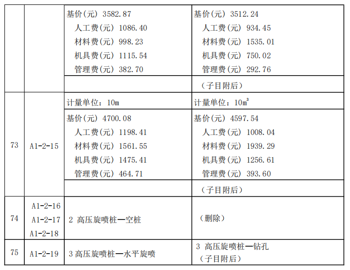 近期,我站組織專家研析了廣東省建設工程定額動態管理系統收集的反饋意見,現將《廣東省房屋建筑與裝飾工程綜合定額 2018》高壓旋噴樁子目調整內容印發你們。本調整內容與我省現行工程計價依據配套使用,除合同另有約定外,已經合同雙方確認的工程造價成果文件不作調整,請遵照執行。執行中遇到的問題,請通過“廣東省工程造價信息化平臺——建設工程定額動態管理系統”及時反映。