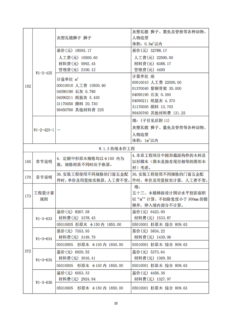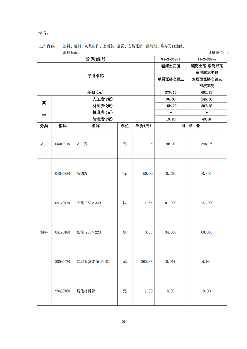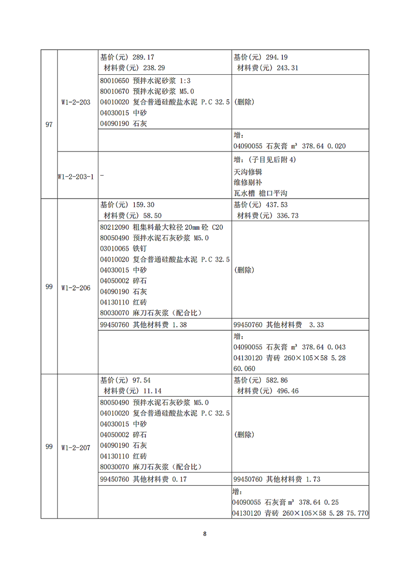 附件:《廣東省傳統建筑保護修復工程綜合定額(試行) 2018》動態調整內容
