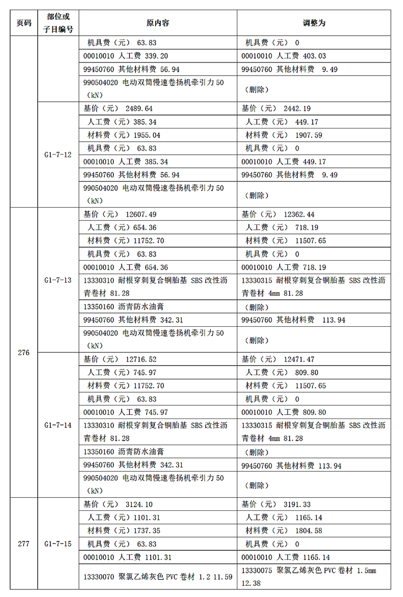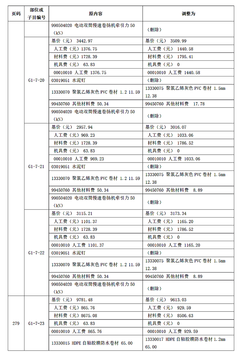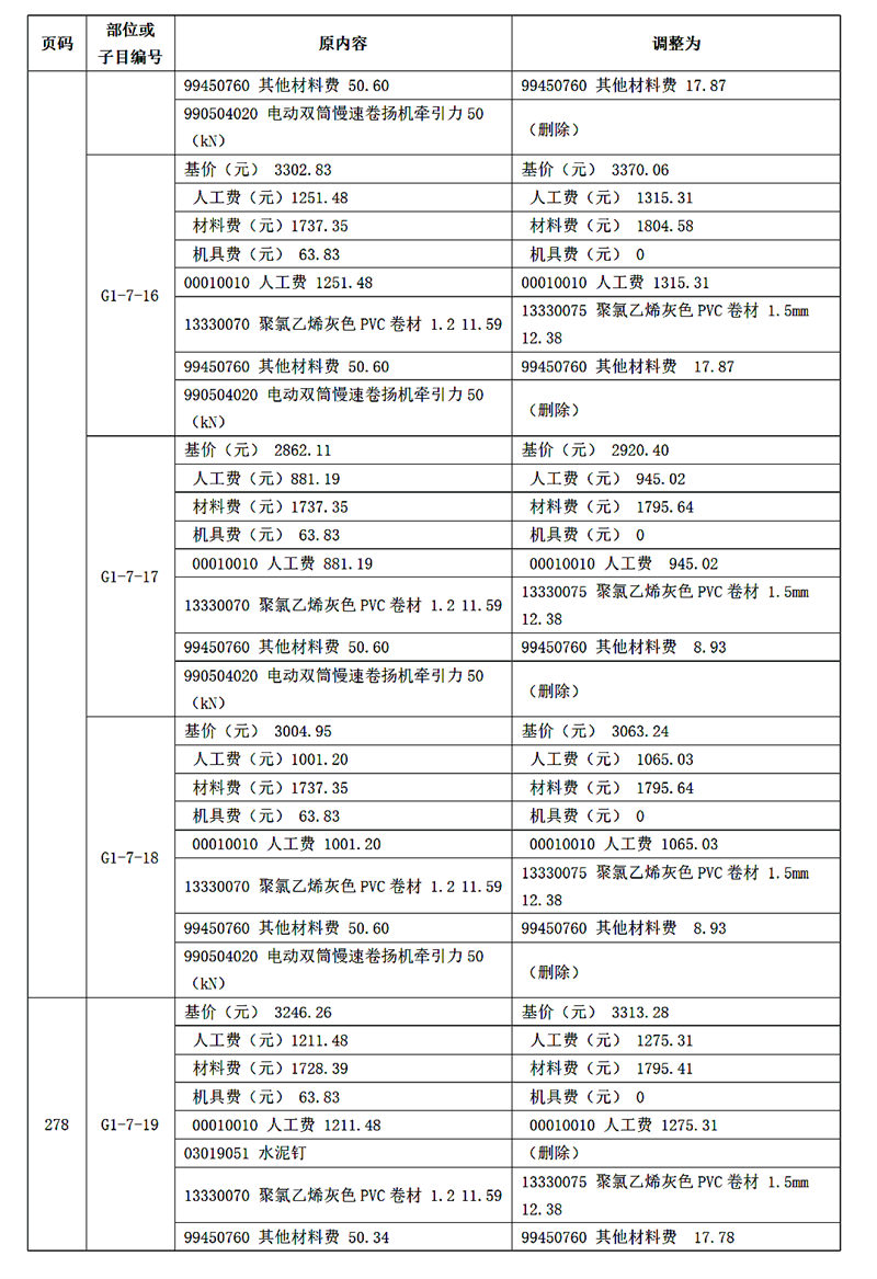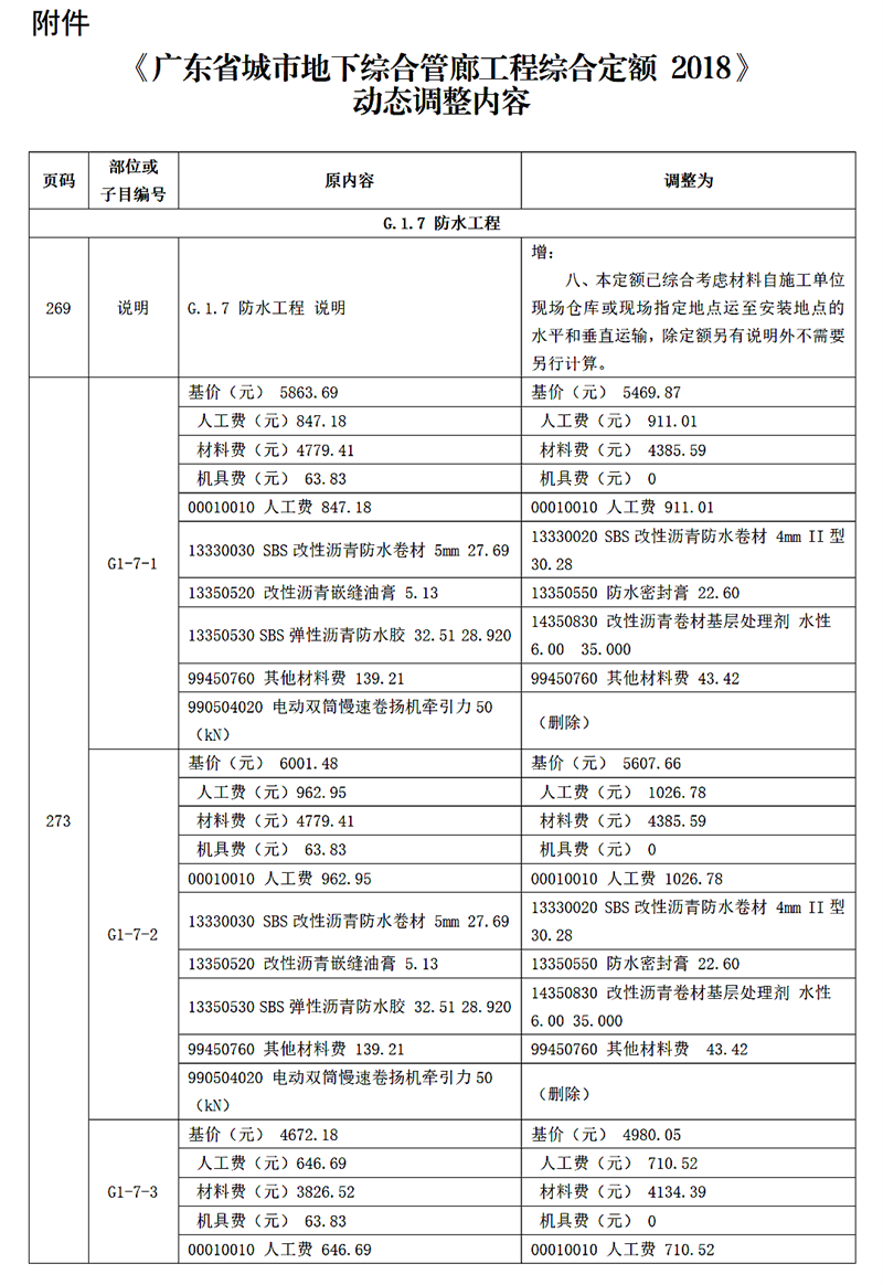附件:《廣東省城市地下綜合管廊工程綜合定額 2018》動態調整內容