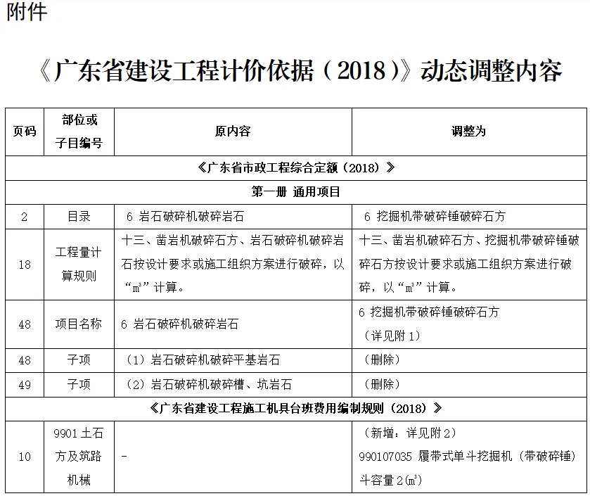附件:《廣東省建設工程計價依據(2018)》動態調整內容