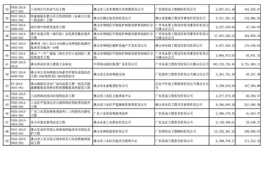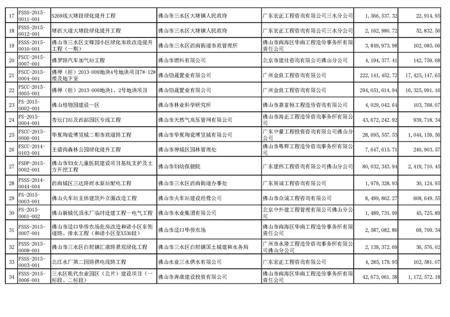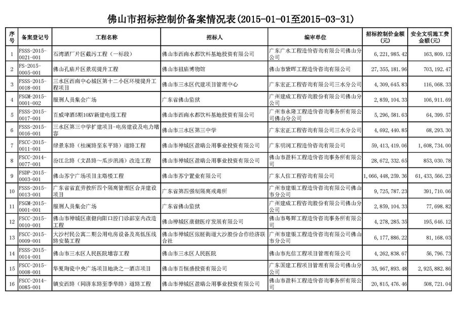 佛山市招標(biāo)控制價(jià)備案情況表(2015-01-01至2015-03-31)