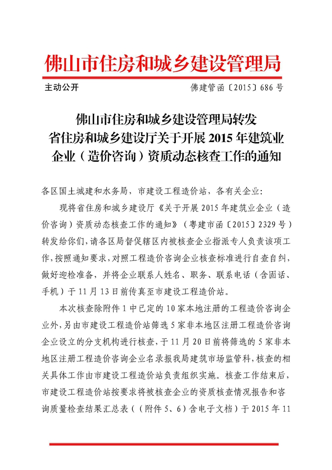 佛山市住房和城鄉(xiāng)建設(shè)管理局轉(zhuǎn)發(fā)省住房和城鄉(xiāng)建設(shè)廳關(guān)于開展2015年建筑業(yè)企業(yè)(造價咨詢)資質(zhì)動態(tài)核查工作的通知