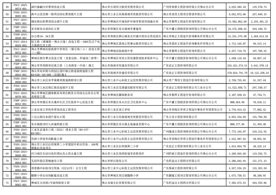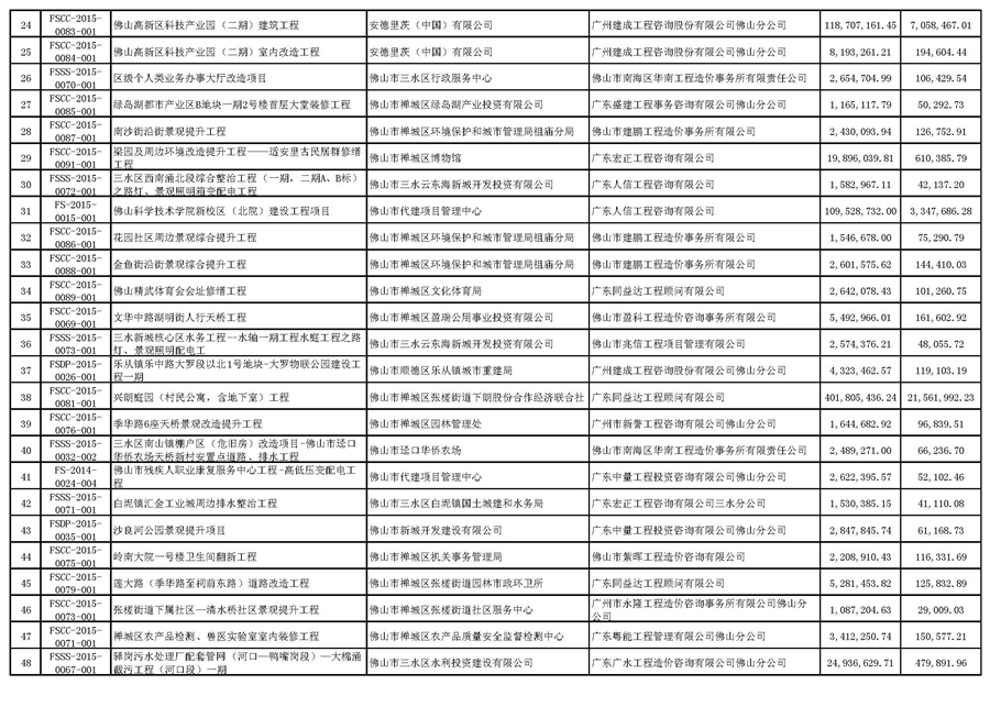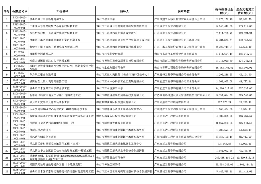 ?佛山市招標控制價備案情況表(2015-10-01至2015-12-31)