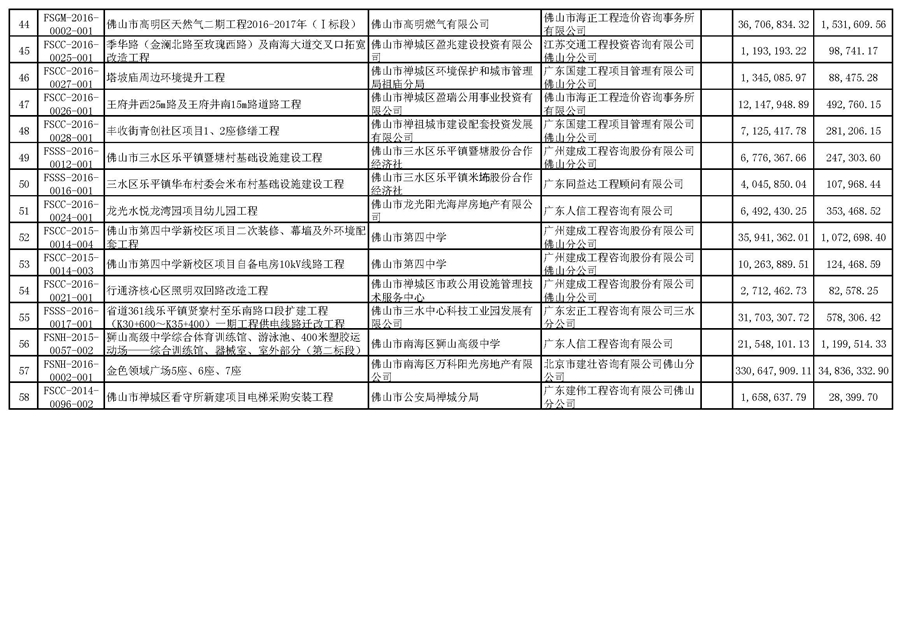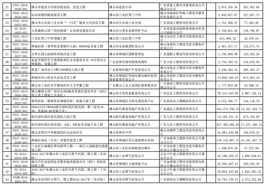 佛山市招標控制價備案情況表(2016-04-01至2016-06-30)