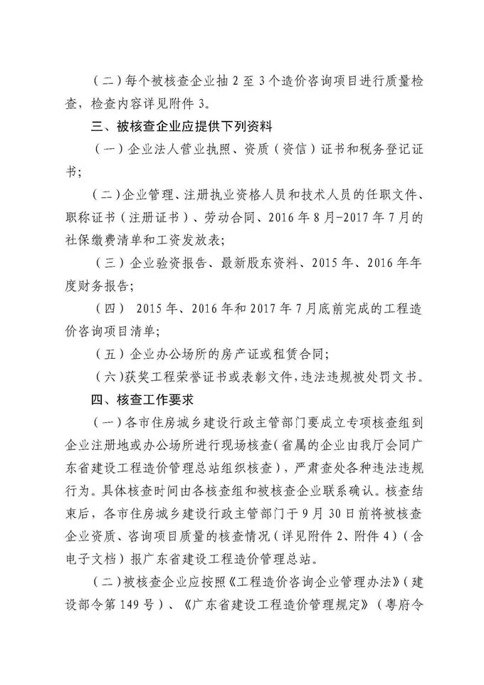 廣東省住房和城鄉建設廳關于開展2017年建筑企業(造價咨詢)資質動態核查工作的通知