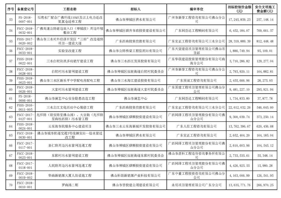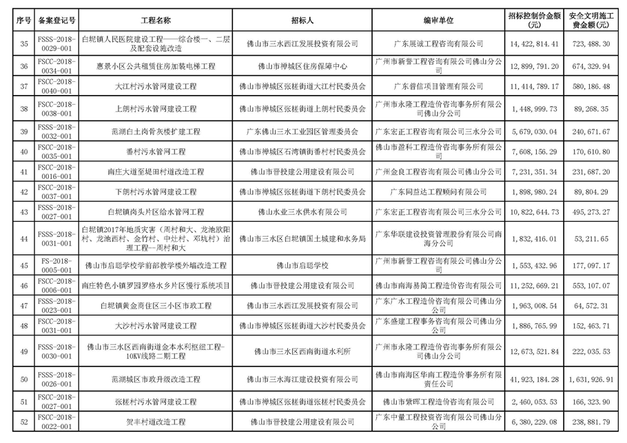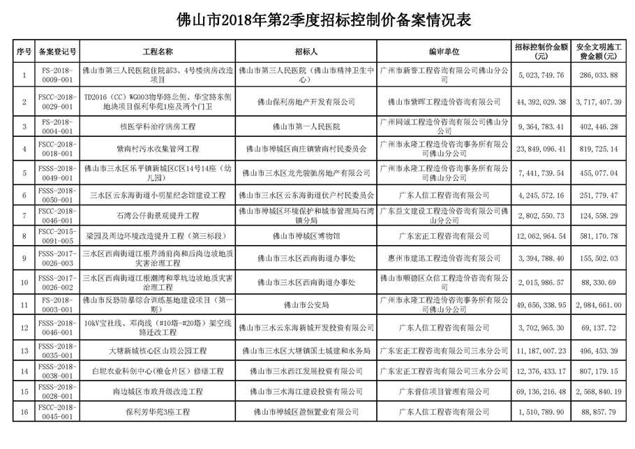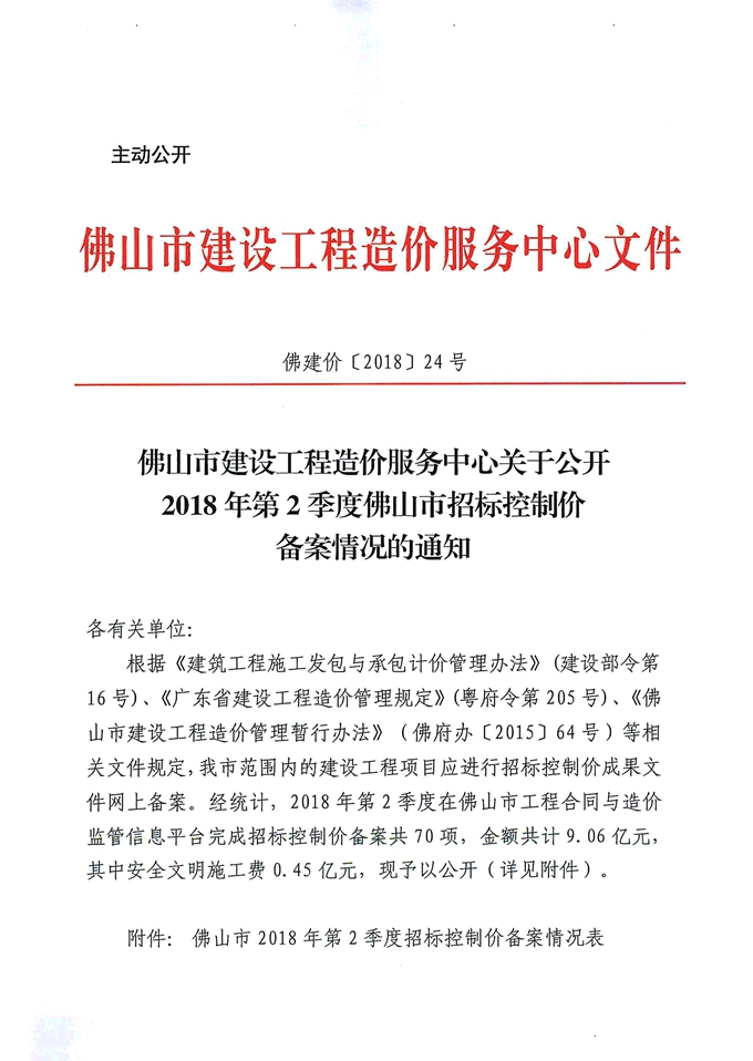 佛山市建設工程造價服務中心關于公開2018年第2季度佛山市招標控制價備案情況的通知