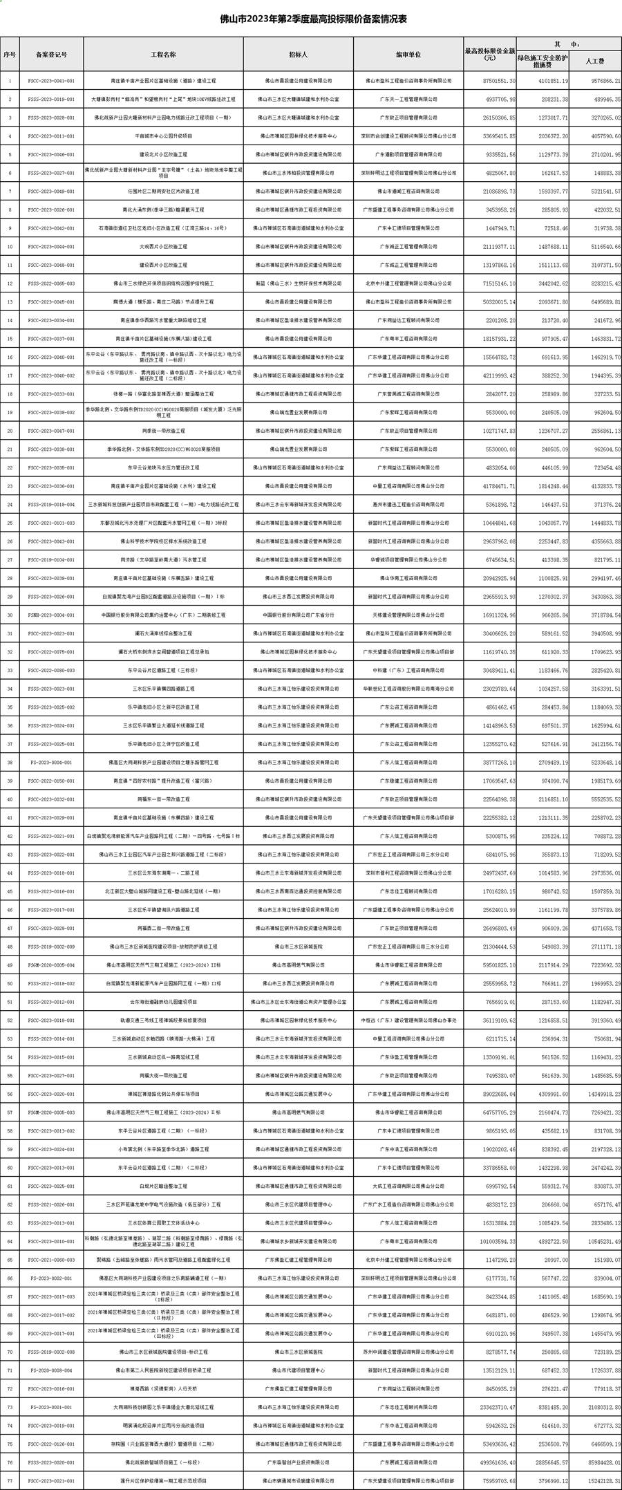 附件:佛山市2023年第2季度最高投標限價備案情況表