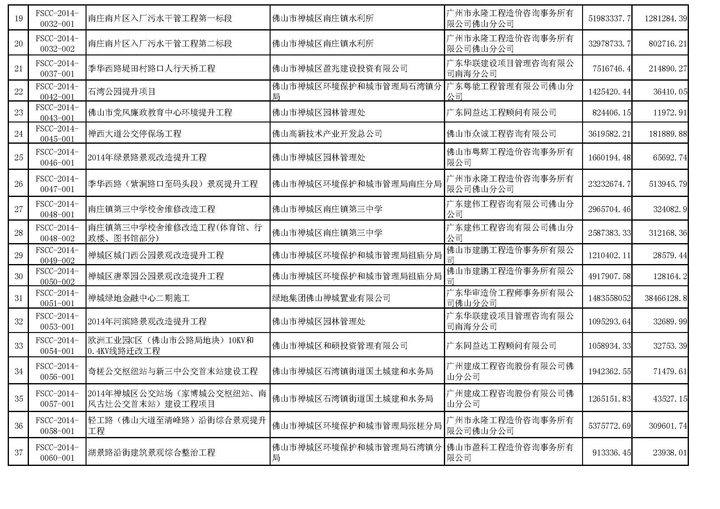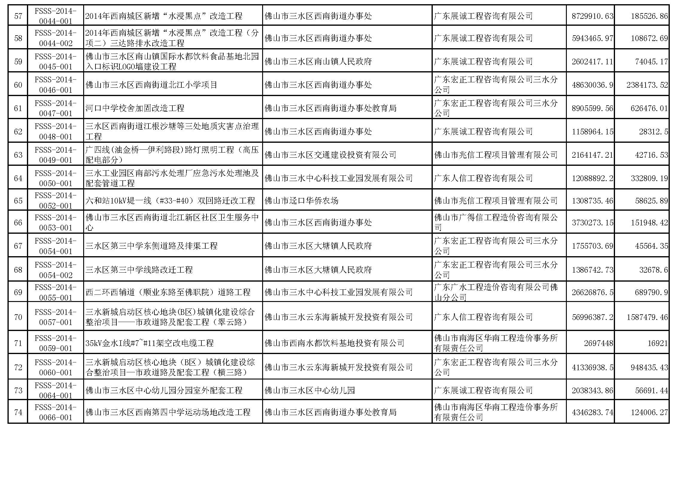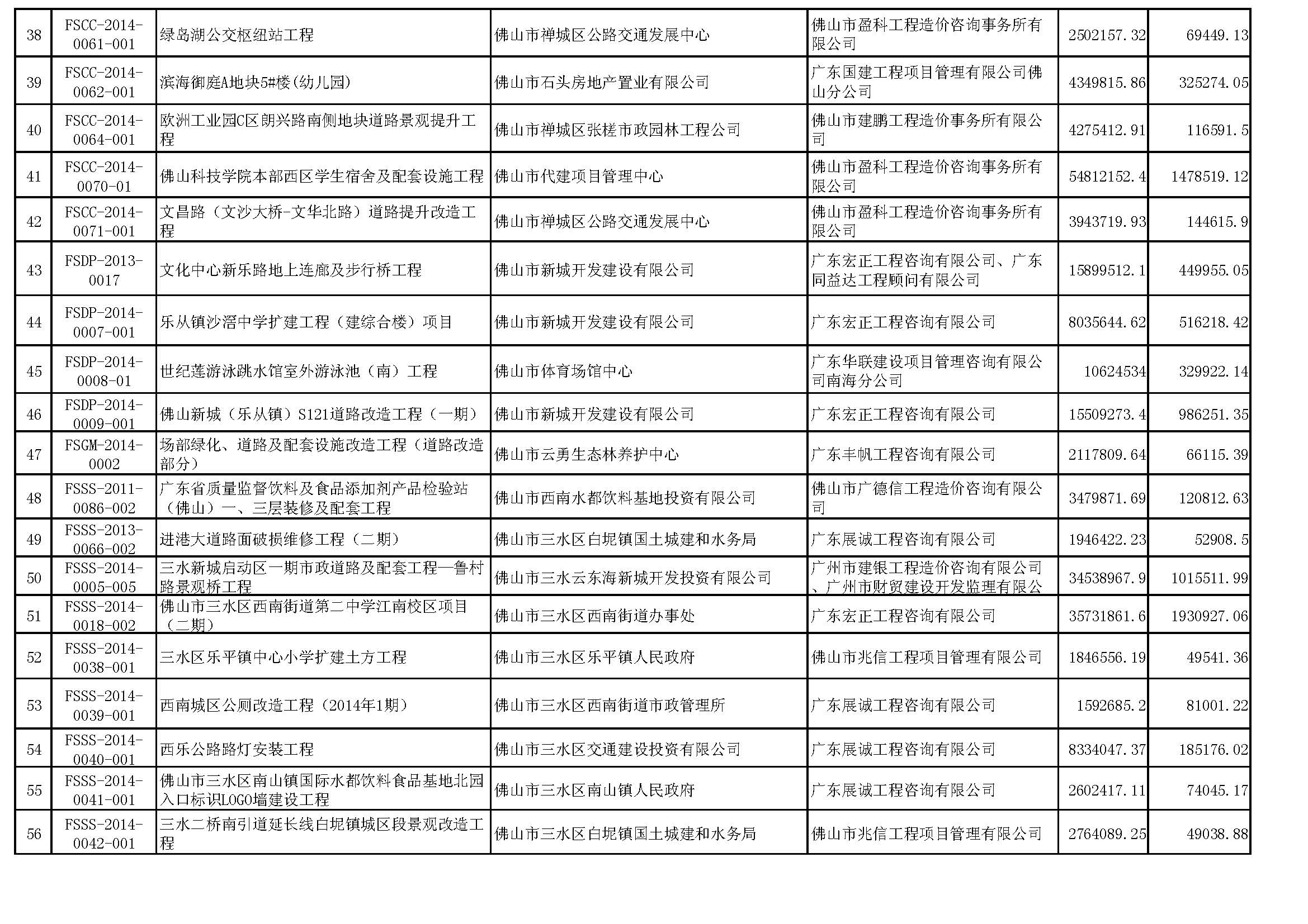 佛山市招標控制價備案情況表(2014-07-01至2014-09-30)