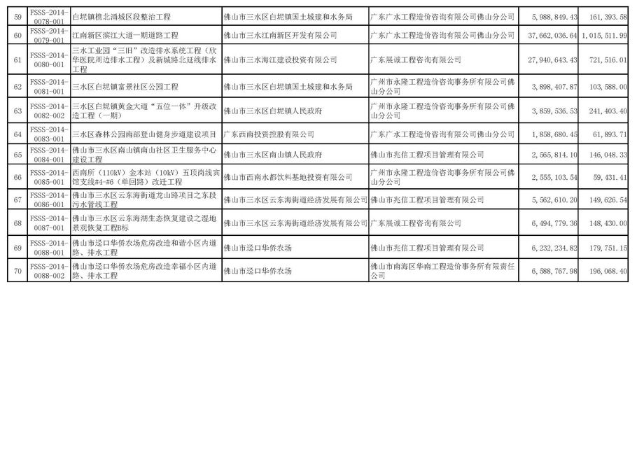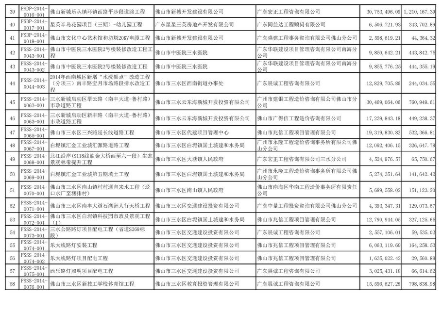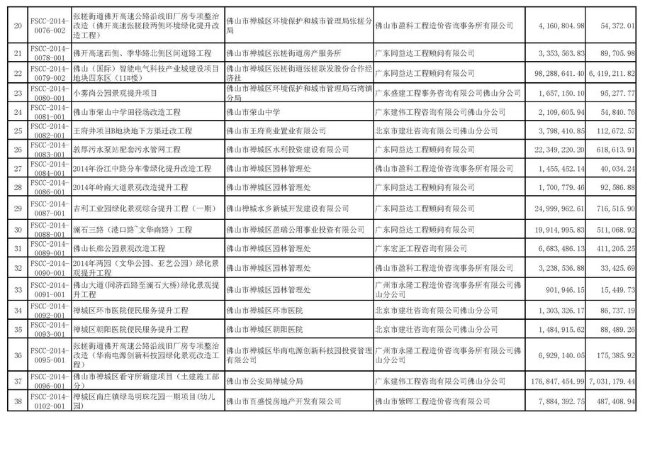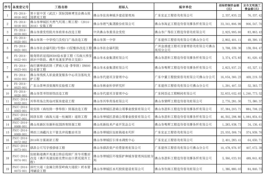 佛山市招標(biāo)控制價(jià)備案情況表(2014-10-01至2014-12-31)