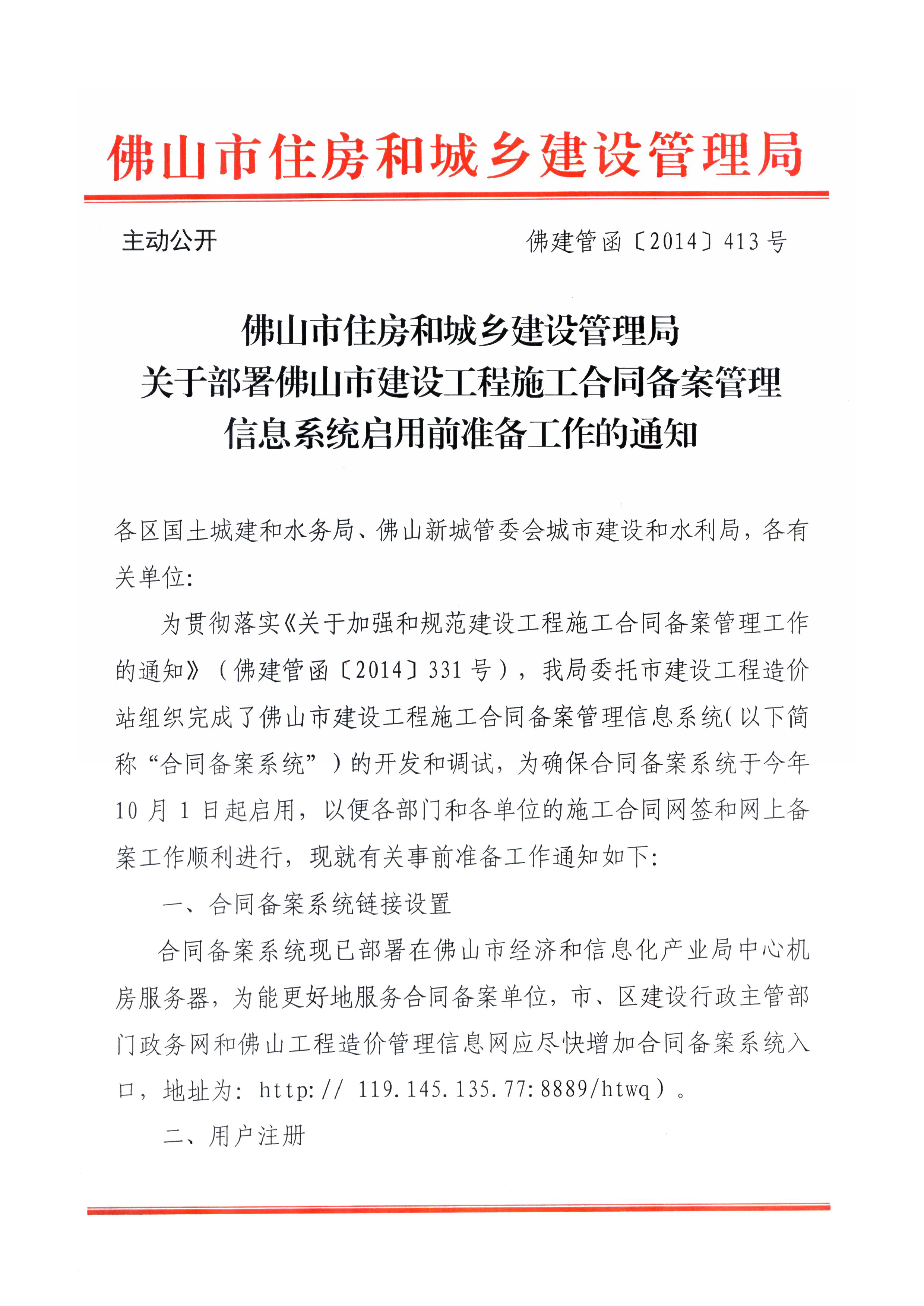 佛山市住房和城鄉建設管理局關于部署佛山市建設工程施工合同備案管理信息系統啟用前準備工作的通知