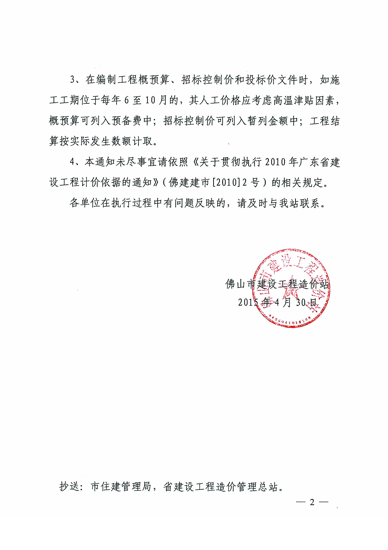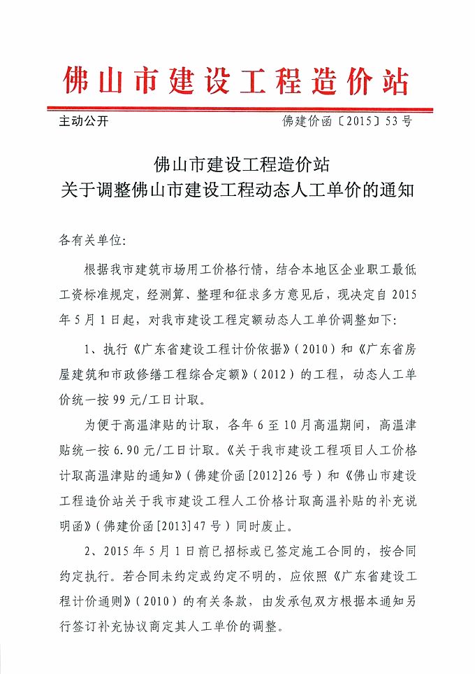 佛山市建設工程造價站關于調整佛山市建設工程動態人工單價的通知