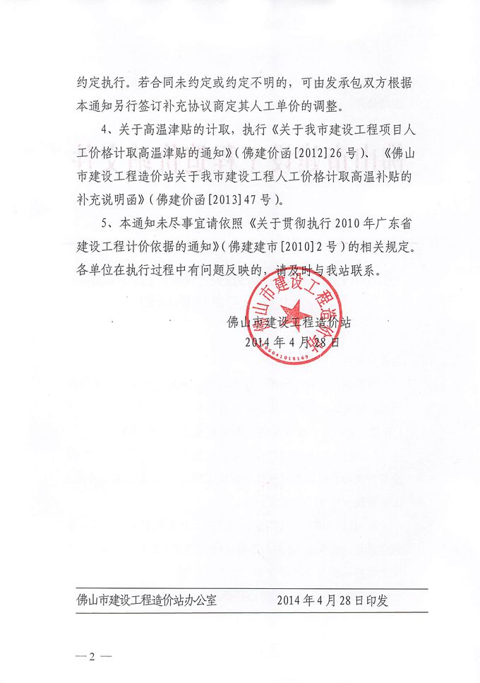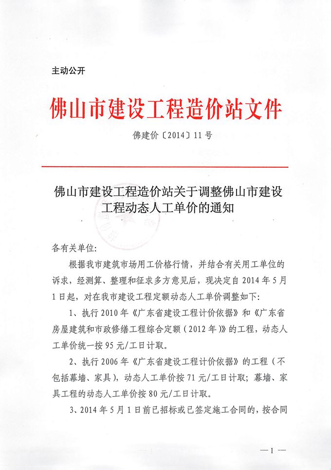 佛山市建設工程造價關(guān)于調(diào)整佛山市建設工程動態(tài)人工單價的通知