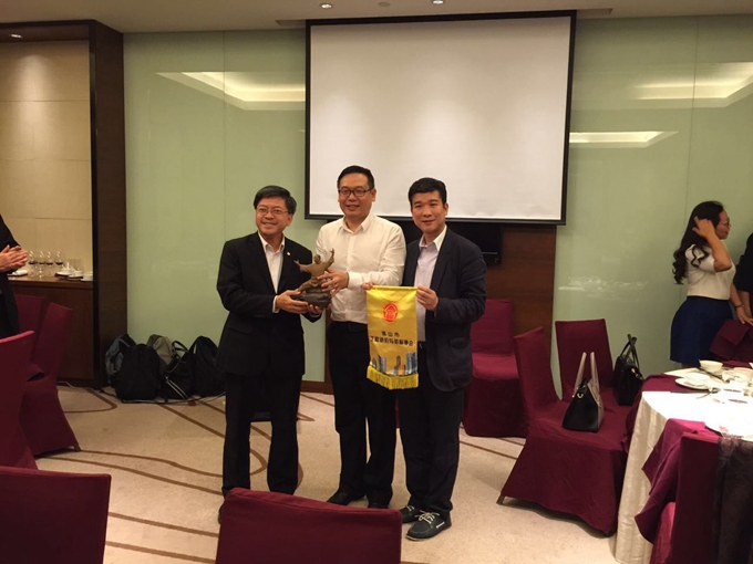 論壇結束后,港佛兩地同行舉行了晚宴,嚴偉鋒會長感謝香港測量師學會工料測量組佛山訪問團的給佛山同行帶來一次難得的學習機會,對促進同行間的國際交流與合作起到了積極的推動作用,香港測量師學會工料測量組主席黃國良先生也代表香港測量師學會工料測量組佛山訪問團對我會的論壇組織工作表示十分欣佩,并感謝我會的盛情款待。席間,嚴偉鋒會長和黃國良主席還相互交換了紀念品,交流活動在愉快的晚宴中落下帷幕!