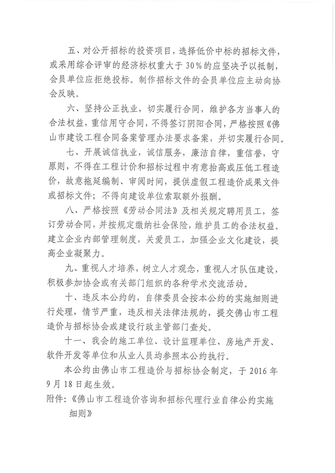 附件:佛山市工程造價咨詢和招標代理行業自律公約實施細則