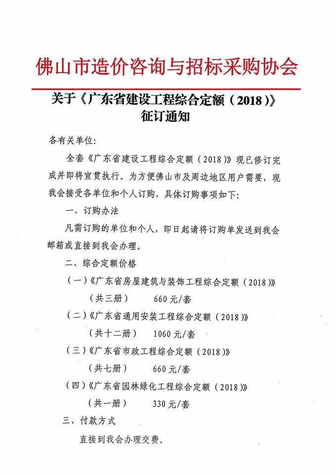 關于《廣東省建設工程綜合定額(2018)》征訂通知