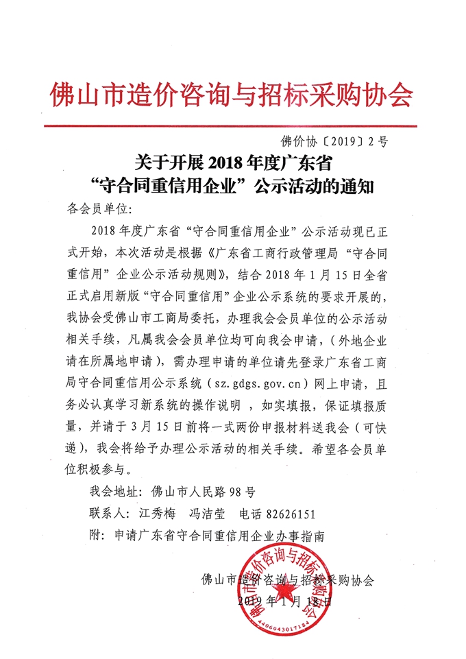 關于開展2018年度廣東省“守合同重信用企業”公示活動的通知
