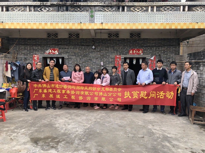 1月15日,我會黨支部和廣東展誠工程咨詢公司、廣東盛建工程事務咨詢有限公司佛山分公司一行8人在高明區民政局程局長親自帶領下,深入到高明區更合鎮白洞村給當地困難戶進行扶貧慰問。