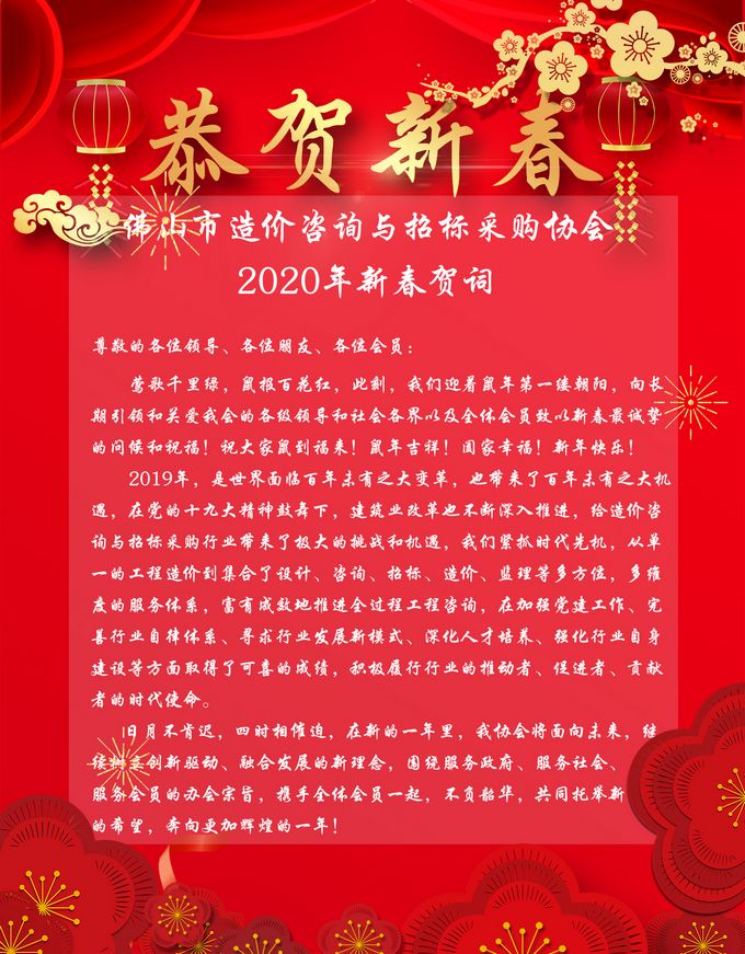 佛山市造價(jià)咨詢與招標(biāo)采購(gòu)協(xié)會(huì)2020年新春賀詞