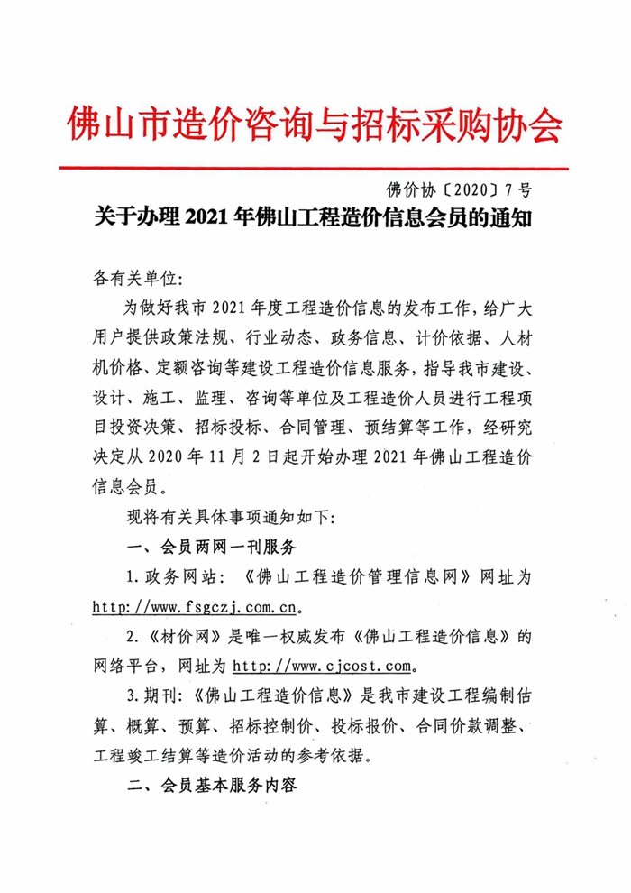 關(guān)于辦理2021年佛山工程造價信息會員的通知