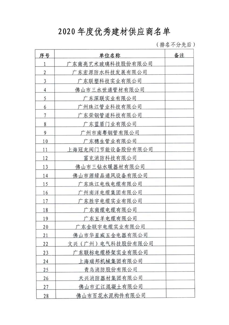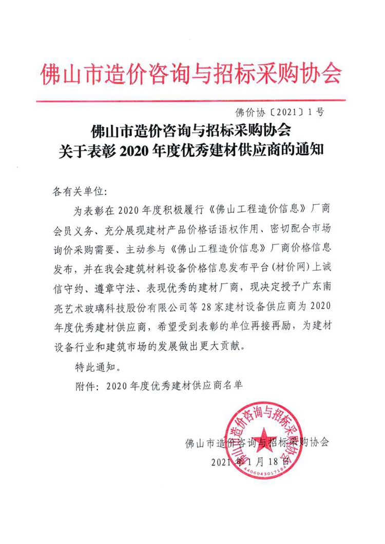 關(guān)于表彰2020年度優(yōu)秀建材供應(yīng)商的通知