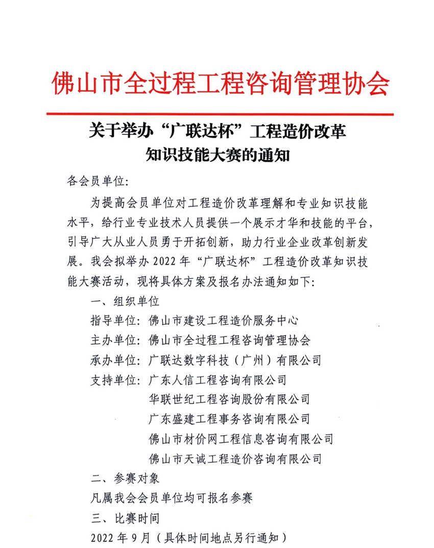 關于舉辦“廣聯達杯”工程造價改革知識技能大賽的通知