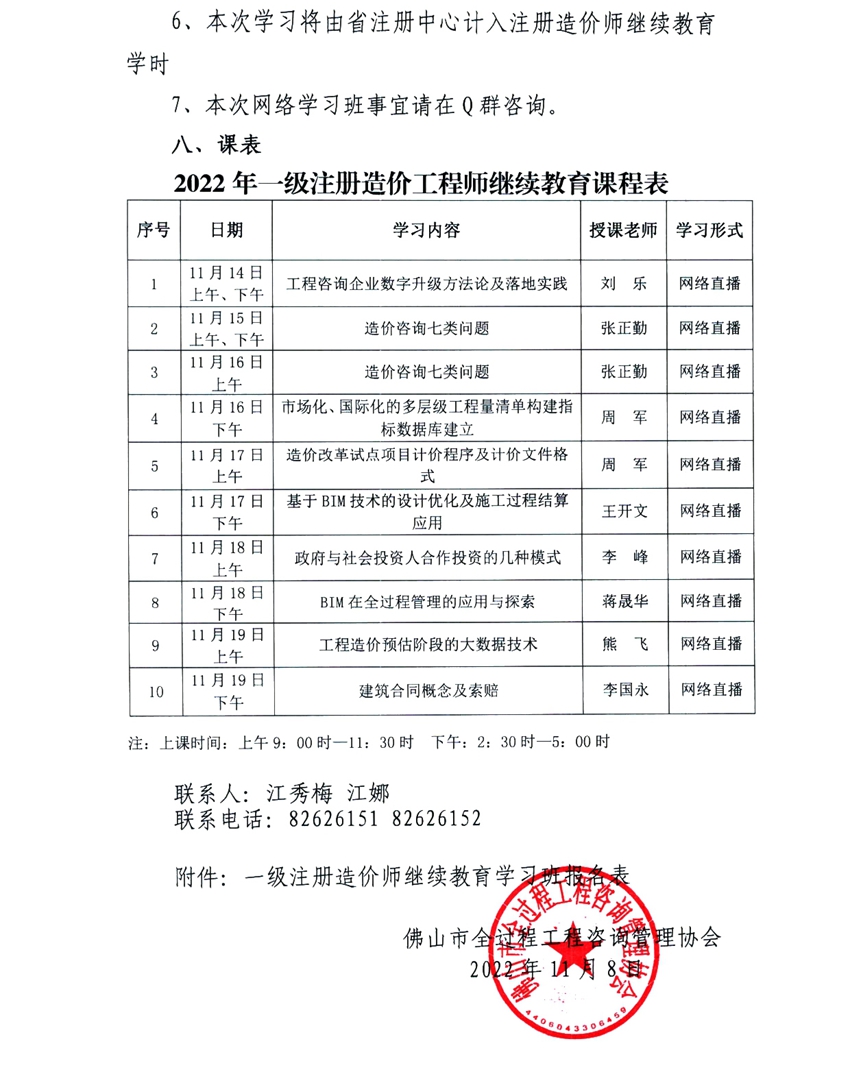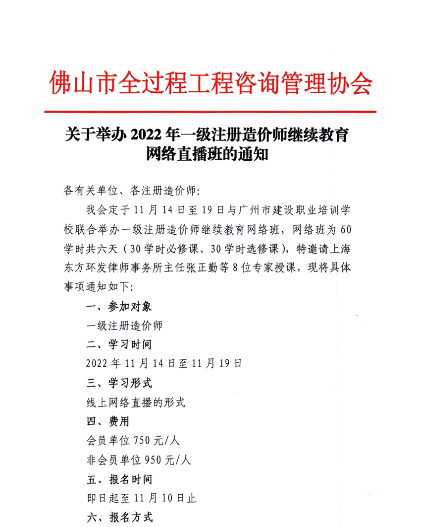 關于舉辦2022年一級注冊造價師繼續教育網絡直播班的通知