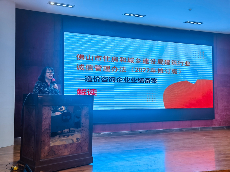 會(huì)議首先由佛山市建設(shè)工程造價(jià)服務(wù)中心造價(jià)監(jiān)測(cè)室負(fù)責(zé)人鄒錦對(duì)《佛山市住房和城鄉(xiāng)建設(shè)局建筑行業(yè)誠(chéng)信管理辦法(2022年修訂版)》和“造價(jià)咨詢企業(yè)業(yè)績(jī)備案”進(jìn)行了宣講,鄒科圍繞《辦法》的修改背景、政策要點(diǎn)、變化和亮點(diǎn)、誠(chéng)信評(píng)價(jià)方式、企業(yè)加/扣分標(biāo)準(zhǔn)、誠(chéng)信評(píng)價(jià)結(jié)果的應(yīng)用等內(nèi)容進(jìn)行了詳細(xì)解讀,結(jié)合《佛山市建設(shè)工程造價(jià)監(jiān)管和信用檔案系統(tǒng)》的“造價(jià)咨詢企業(yè)業(yè)績(jī)備案”,講解了業(yè)績(jī)備案的文件上傳要求、填報(bào)注意事項(xiàng)、得分計(jì)算規(guī)則、動(dòng)態(tài)管理與查詢公布方式等。