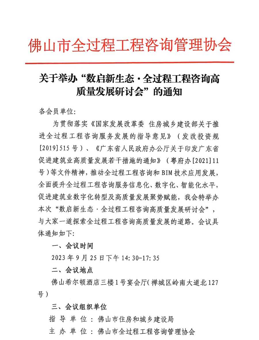 關于舉辦“數啟新生態·全過程工程咨詢高質量發展研討會”的通知