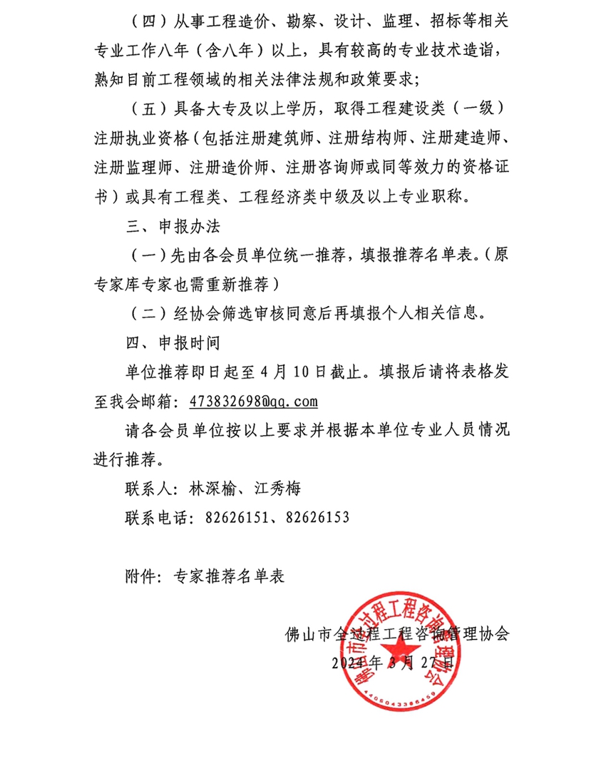 佛山市全過程工程咨詢管理協會關于征集專家庫專家的通知