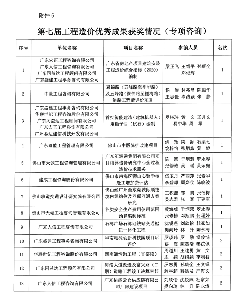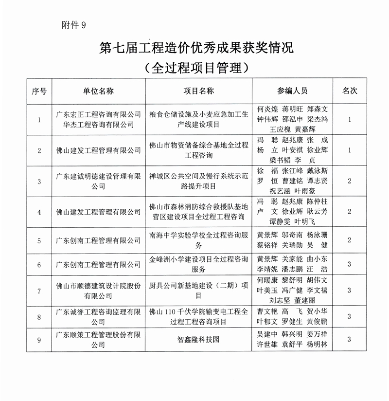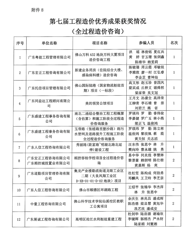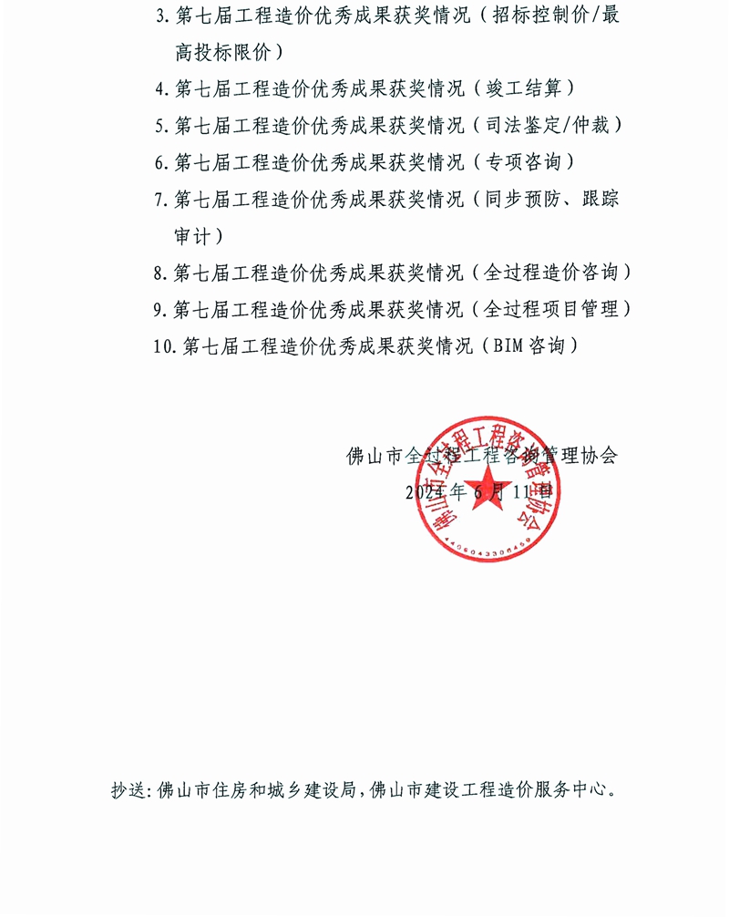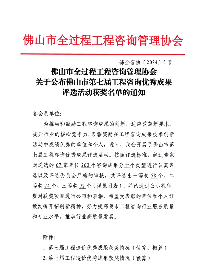 佛山市全過程工程咨詢管理協會關于公布佛山市第七屆工程咨詢優秀成果評選活動獲獎名單的通知