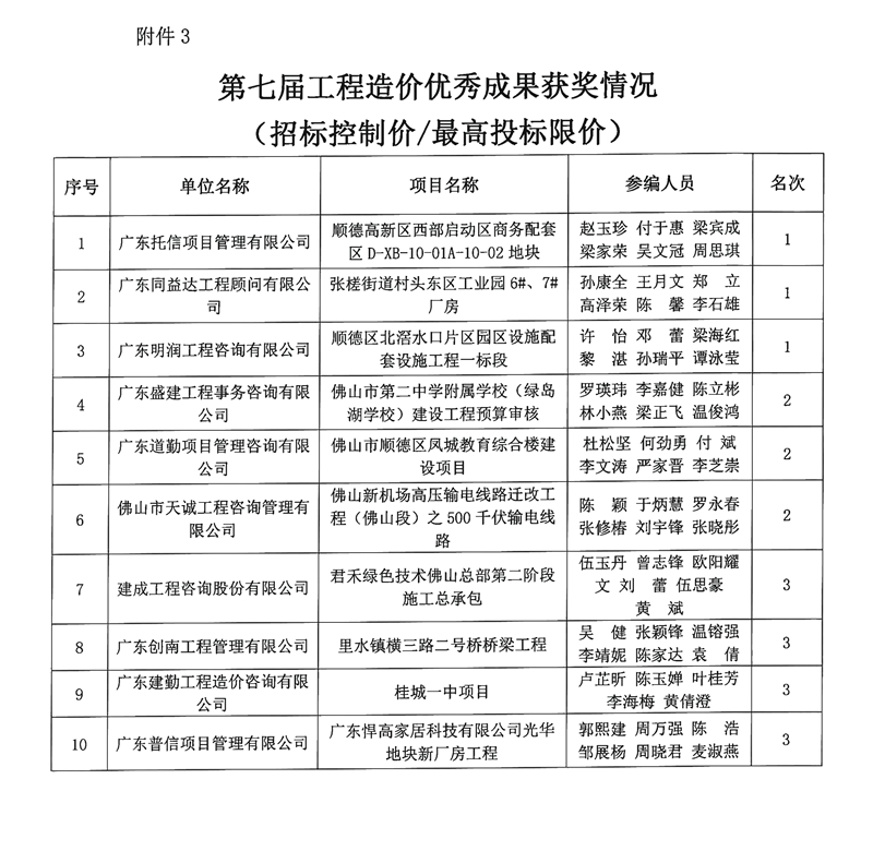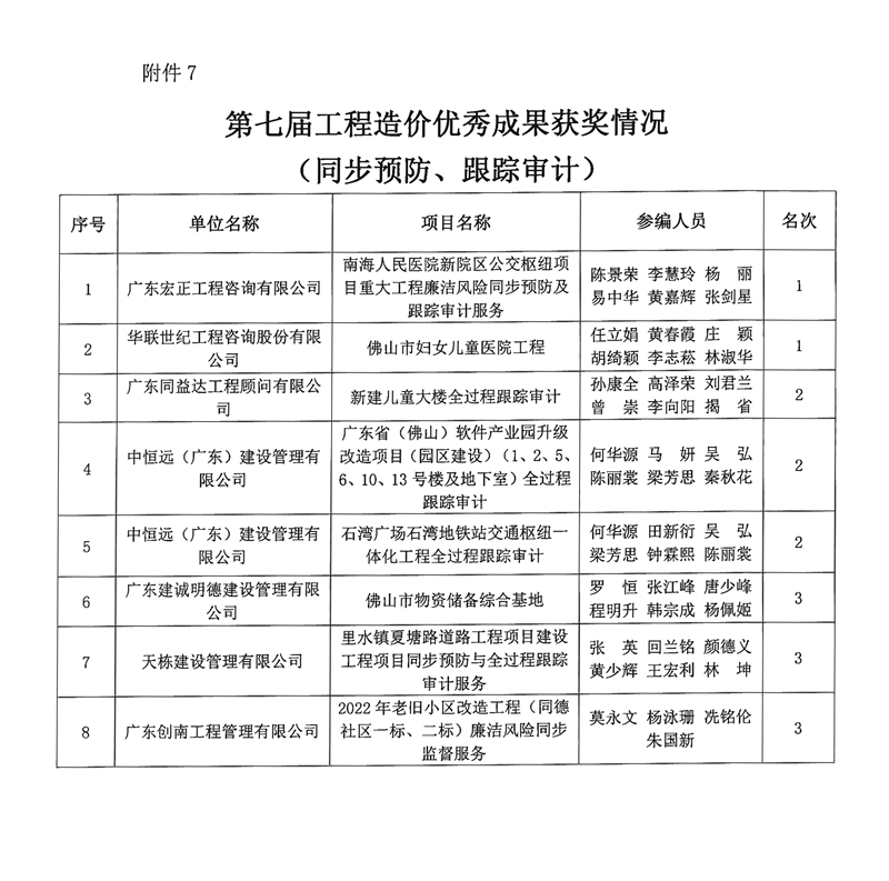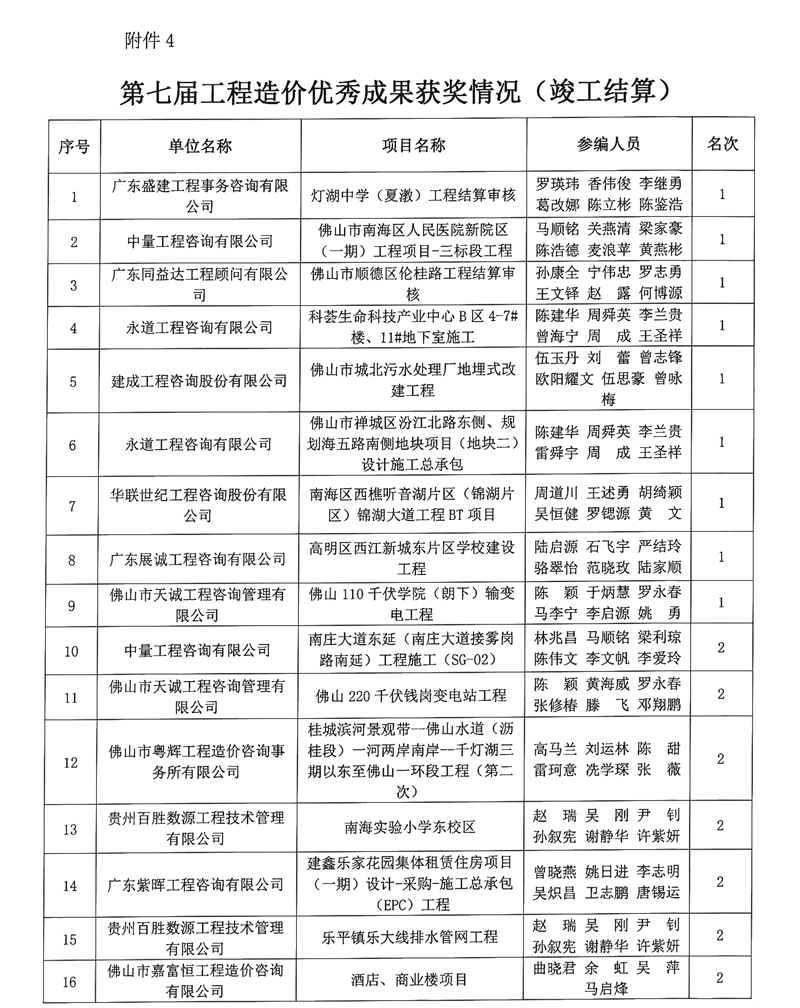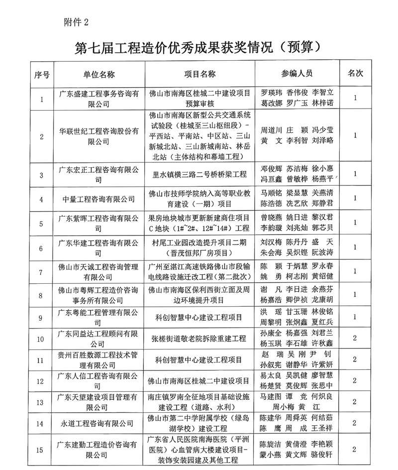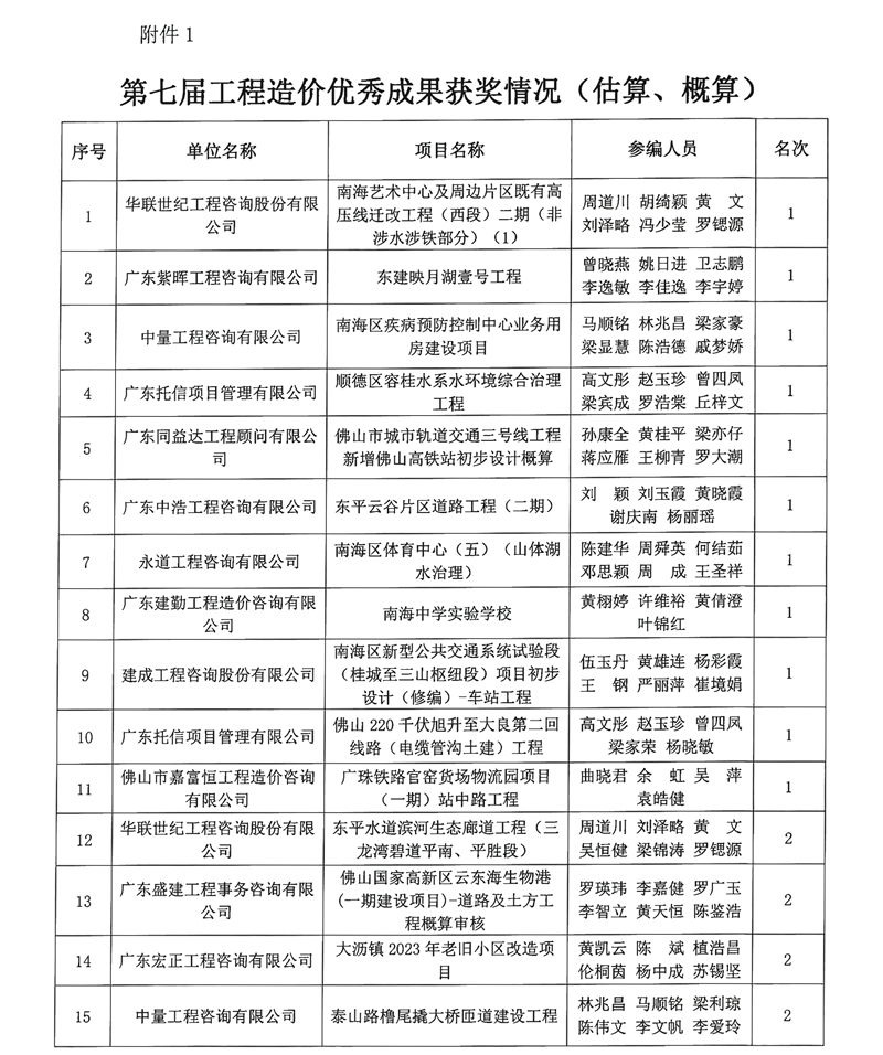 佛山市全過程工程咨詢管理協會關于公布佛山市第七屆工程咨詢優秀成果評選活動獲獎名單的通知