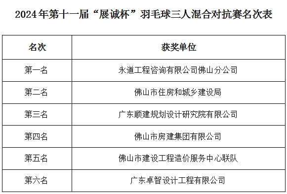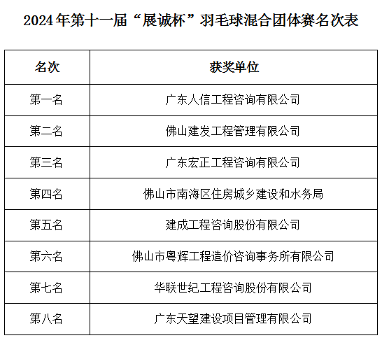 “展誠”相遇 無“羽”倫比 | 佛山市全過程工程咨詢管理協(xié)會2024年第十一屆“展誠杯”羽毛球團(tuán)體賽圓滿落幕