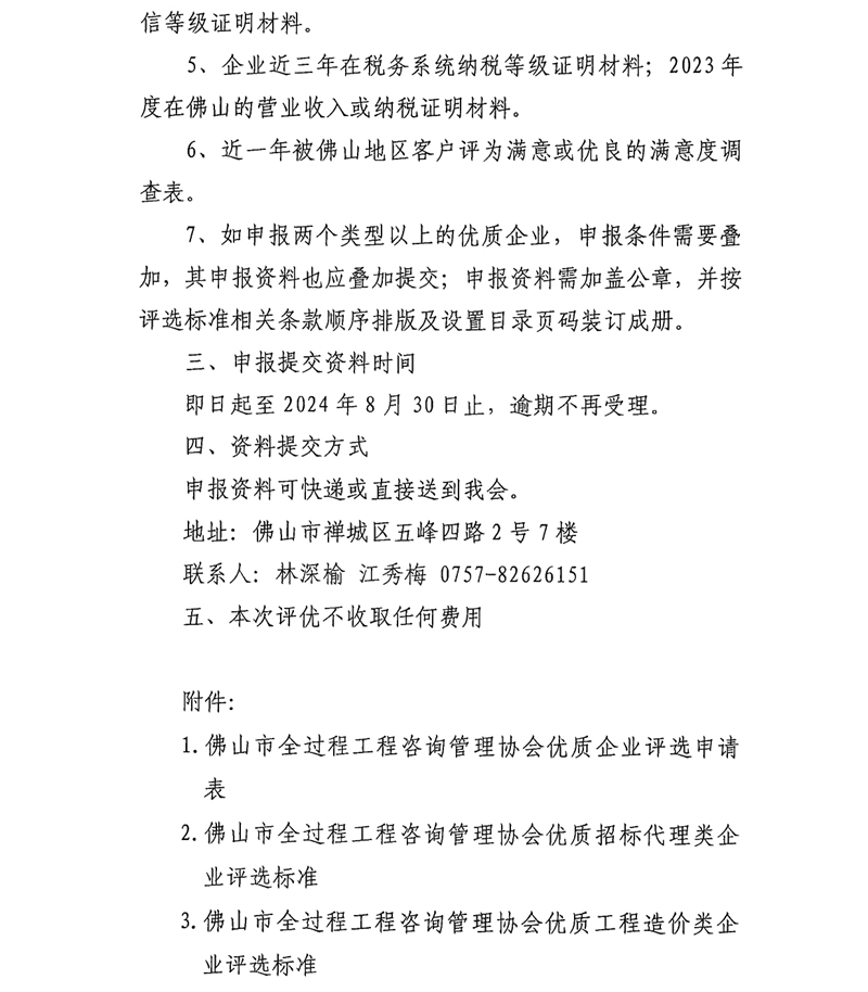 附件3:佛山市全過程工程咨詢管理協會優質工程造價類企業評選標準