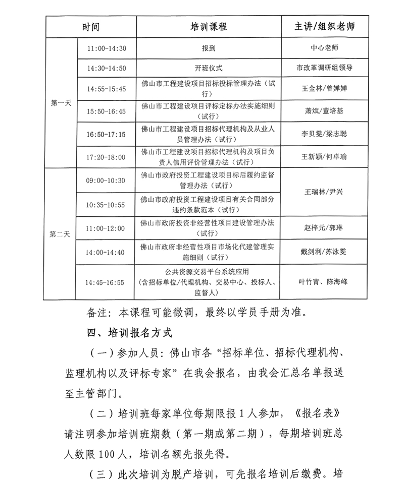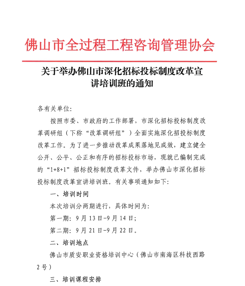 關于舉辦佛山市深化招標投標制度改革宣講培訓班的通知