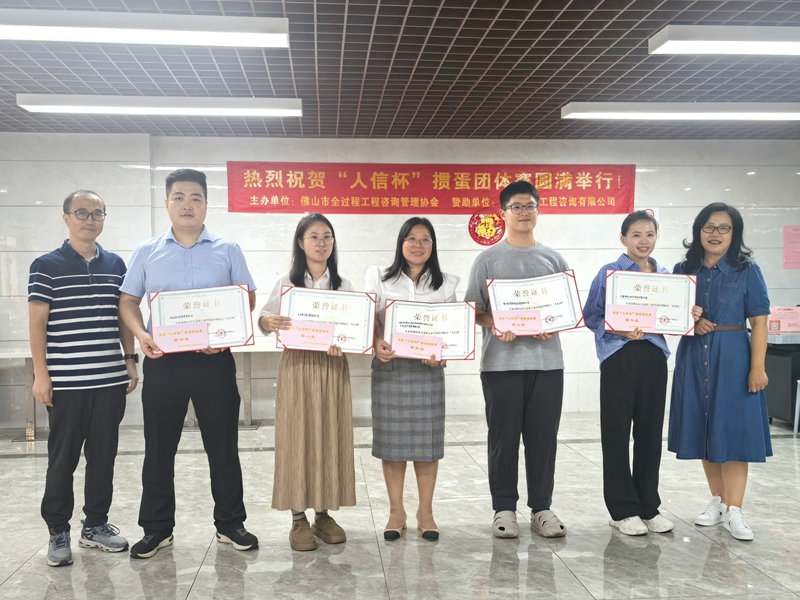 經過一天的激烈角逐,最終佛山造價聯隊問鼎團體賽冠軍,廣東展誠工程咨詢有限公司獲得亞軍,廣東同益達工程顧問有限公司、廣東盛建工程事務咨詢有限公司、佛山市新一建筑集團有限公司聯隊獲得季軍。獲得第四至第八名的隊伍分別為:廣東創南工程管理有限公司(第四名)、國眾聯建設工程管理顧問有限公司佛山分公司、廣東洋藝建設有限公司聯隊(第五名)、華聯世紀工程咨詢股份有限公司(第六名)、佛山軌道交通設計研究院有限公司(第七名)、廣東省六建集團有限公司(第八名)。