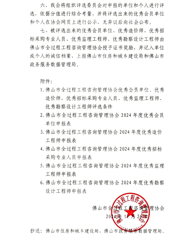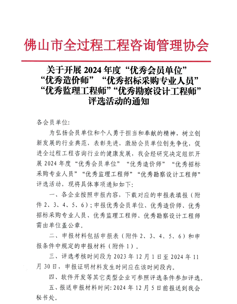 關(guān)于開展2024年度“優(yōu)秀會員單位”“優(yōu)秀造價(jià)師”“優(yōu)秀招標(biāo)采購專業(yè)人員”“優(yōu)秀監(jiān)理工程師”“優(yōu)秀勘察設(shè)計(jì)工程師”評選活動的通知