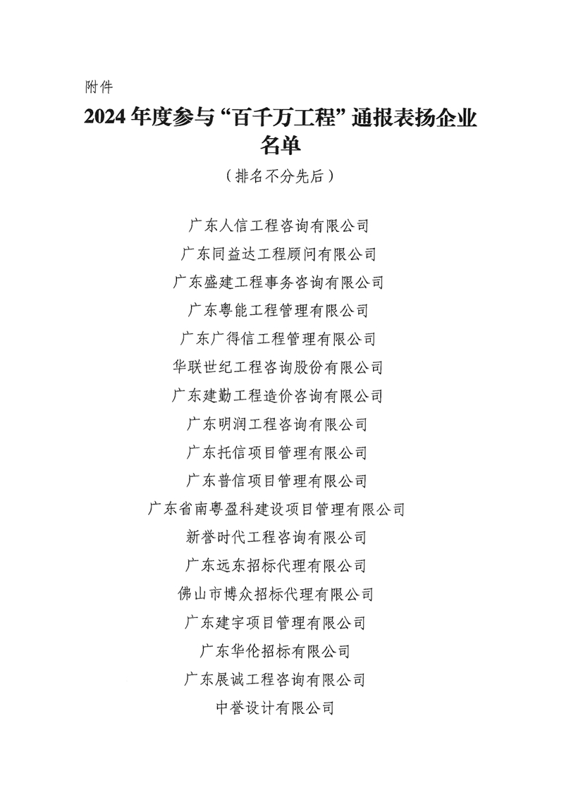 佛山市全過程工程咨詢管理協會關于對2024年度參與“百千萬工程”工作表現優秀企業的通報表揚
