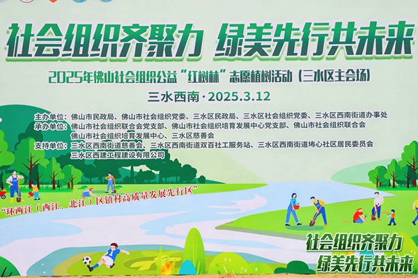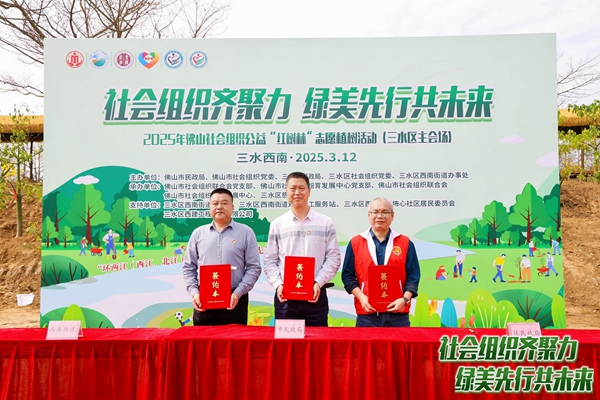 3月12日,由佛山市民政局、佛山市社會組織黨委、三水區民政局、三水區社會組織黨委、三水區西南街道辦事處主辦的“社會組織齊聚力 綠美先行共未來”2025年佛山社會組織公益“紅樹林”首期志愿植樹活動在環兩江先行區西南街道老沙島的主會場上舉行,禪城、南海、順德、高明四個區同步設活動分會場?;顒庸舶l動180多家社會組織黨組織、社會組織及會員企業參與,逾700人參與現場植樹。